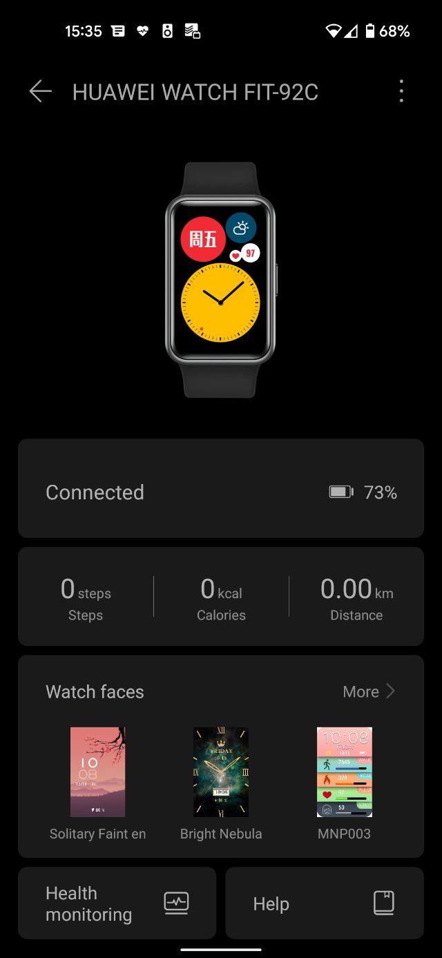 Natuurlijk kun je verschillende watch faces downloaden en instellen via de Huawei Health applicatie. Dit doe je via het tabblad Devices en in de instellingen van je Huawei Watch Fit.